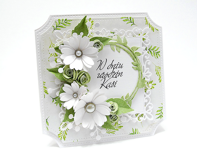 The first is baptism card. I used this diecut twig and a wreath. The inscription has been stamped with this stamp.